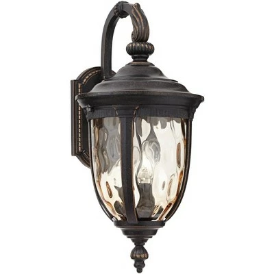 This bronze outdoor wall light casts an appealing glow though champagne hammered glass. From the Bellagio collection by John Timberland, this wall light is modeled after classic European designs and will provide a handsome vintage look for your home. Great for use as a garage lighting fixture or for illuminating a walkway or driveway.