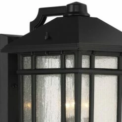 - 16 1/2″ high x 10″ wide. Canopy is 6″ wide x 1 1/4″ high. Weighs 9.02 lbs. Damp location rated only for use on covered porches or patios. Can also be used indoors.