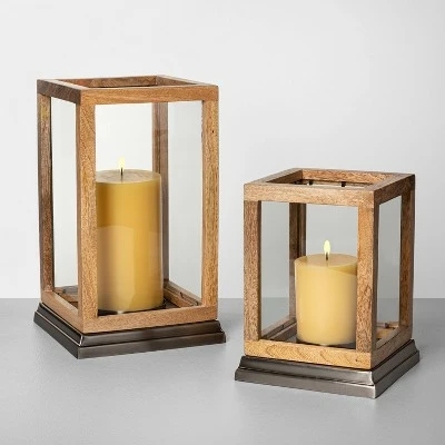 Whether you’re looking to add a beautiful centerpiece to your dining table or just want to spread a warm glow among your indoor decor, the Wood and Glass Lantern from Hearth & Hand™ with Magnolia makes the perfect pick. Designed with a solid wooden frame with clear glass panels on each side, this wooden tabletop lantern comes with an open-top design that allows you to display your favorite scented/unscented candle, while its solid metal base gives it a vintage-inspired look. Place it around your home — in the center of coffee table or on the living room mantel — to create a spectacular display.