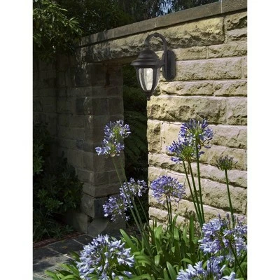Our exclusive outdoor wall light from John Timberlandยฎ comes in a lush black finish. A decorative finial up top and seedy glass panels complete the look. Part of the Casa Sierra outdoor lighting collection.
