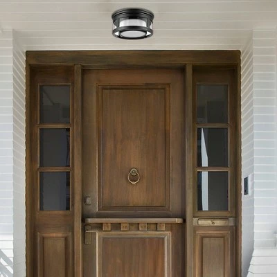 Statement lighting doesn’t have to be large to make an impact. The 12-inch Brisbane 1-Light Outdoor Indoor Flush Mount Ceiling Light is the perfect example of unobtrusive flush mount lighting that isn’t oversized yet packs a mighty punch. The black frame highlights a clear glass outer shade which surrounds a frosted glass inner shade to make a dramatic impact from every angle. While this is a very rustic piece, the mixture of the finish and frosted glass with the outline frame offers a very coastal feel. Accenting all decor styles, you’ll have fun placing this light around your home.