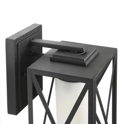 Brighten up your house’s exterior and interior with this classic outdoor wall mount light fixture by LNC. This modern farmhouse outdoor wall light features a matte black finish lamp body and frosted glass shade design, and inside a cylinder, the glass lampshade makes it full of modern feelings, fitting nicely in many decors. X-shaped iron bars make this outdoor light fixture more fashionable. The solid aluminum construction and opal glass shade with a nautical feel work well in rustic country decors or seaside homes.