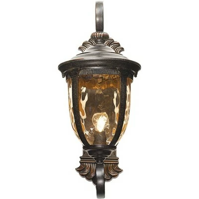 The Bellagio collection by John Timberland is inspired by classic European designs and guarantees a lovely traditional look. This outdoor wall light comes in a warm bronze finish and champagne hammered glass for antique vintage styling. Dual upbridge and downbridge scroll arms complete the elaborate look of this fixture.