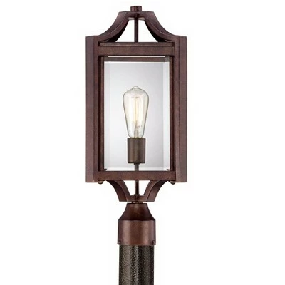 The Rockford collection by Franklin Iron Works offers a transitional style with a rustic touch. This outdoor post light comes in a warm bronze frame that holds clear beveled glass panels in between the slats. Use it to illuminate a walkway, pathway, driveway, or side area of the house. A decorative light bulb in a charming vintage Edison style is included with this fixture.