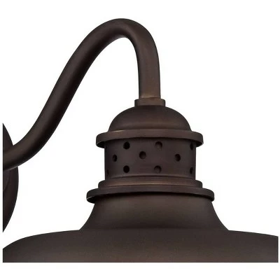 - Oil rubbed bronze finish. Steel construction. Open metal cage with gooseneck top arm. Vintage barn lighting style.