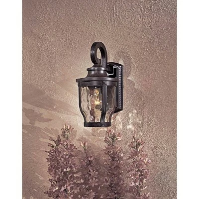 Minka’s Merrimack Collection of outdoor lighting features thick, bold lines and hammered glass. Cast aluminum construction is finished with a Corona Bronze finish. The curves in the design and the hammered glass soften the look of this collection for a comfortable, welcoming look.