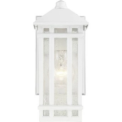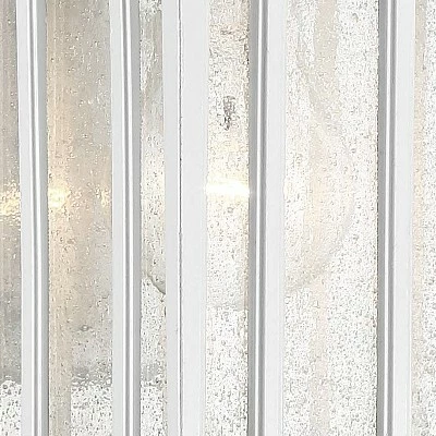 Classic Americana styling from Kathy Ireland’s Sierra Craftsman lighting collection. This design features a warmly handsome Arts and Crafts inspired design. It features a white finish with frosted seeded glass panels for that perfect rustic touch.