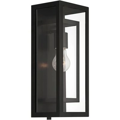 From Possini Euro Design, the handsome Double Box upright outdoor wall fixture features an outer frame of black finish metal and clear glass. Inside, a second frame of clear glass and an included Edison-style bulb offer a vintage touch. Together, they create a wall light that is worth your attention and will enhance your home’s exterior spaces.