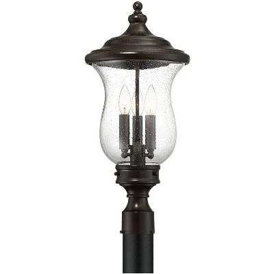 Buy 🔥 Franklin Iron Works Outdoor Post Light Fixture LED Dimmable Bronze 23″ Clear Seedy Glass for Exterior Garden Yard Driveway 👏
