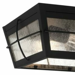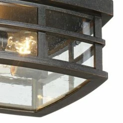 Traditional gas lanterns, beacons of flock tenders long ago, are the inspiration for the Shepherd collection dark weathered zinc outdoor flushmount ceiling light from Feiss. The two bulbs, seen through diffusive opal etched inner glass and clear seedy outer glass, recall the herder’s flame. Made of StoneStrong, a durable, weather resistant composite material made from layers of latex composite, ground marble, and an industrial finish adhesive.