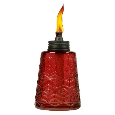 Few things are as enjoyable as dining outside with family and friends. Next time you dine al fresco, gather everyone around your table to experience the warm glow of natural flame lighting. A TIKI Brand Molded Glass Tabletop Torch makes a perfect centerpiece to illuminate your table and your conversations. Group more than one together to create a striking focal point or use individually as colorful accents on tables around your yard or patio. Each 12oz fill delivers up to 5 hours of burn time when used with TIKI Brand Torch Fuel. Available in Red, Clear, and Blue glass, the modern design of these table torches looks great with any style of dΓ©cor for any holiday party or occasion. TIKI Brand Molded Glass Tabletop Torches are sold separately and come with the 6 inch tall glass vessel, a long-lasting fiberglass wick, and a metal snuffer to extinguish the flame at the end of the night. TIKI Brand Torch Fuel sold separately.