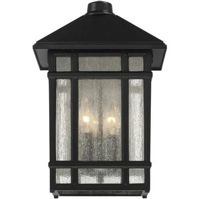 Add Americana styling from the Kathy Ireland Home J du J Sierra Craftsman Collection to your home. This outdoor wall light design was inspired by classic Arts and Crafts looks from the turn of the century. It features a black finish with clear seedy glass. With its clean lines and striking look, this is perfect for adding curb appeal to your home.