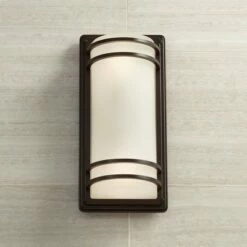 Coupon ⌛ John Timberland Modern Outdoor Wall Sconce Fixture Rubbed Bronze 16″ Opal Etched Glass for Exterior House Porch Patio ⌛