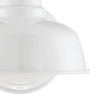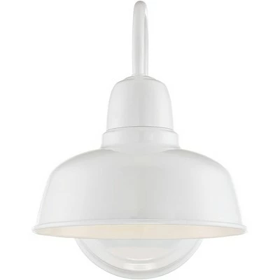From the Urban Barn collection by John Timberland, this indoor-outdoor wall light comes in a charming industrial farmhouse style. The steel frame features a wide downlight shade attached to the end of a thin, arching gooseneck arm. A bright white finish adds a clean and lovely touch. Perfect for use in a porch or patio area.