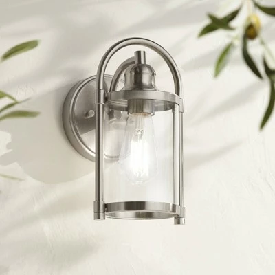 Discount ๐ŸŽ‰ John Timberland Farmhouse Outdoor Lantern Wall Light Fixture Brushed Nickel 10 1/4″ Clear Glass Damp Rated for Exterior House ๐ŸŽ