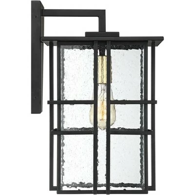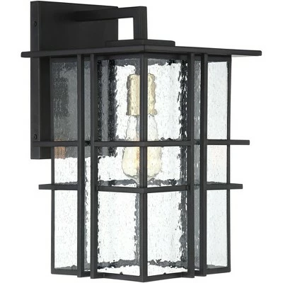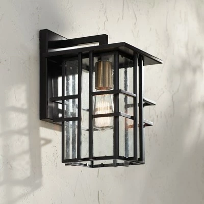 Discount ๐Ÿ‘ Possini Euro Design Modern Outdoor Wall Light Fixture Black Geometric Frame 12″ Seedy Glass for Exterior House Porch Patio Deck โœ”๏ธ