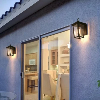 Flash Sale 👍 11.8" Metal/Glass Outdoor Wall Lamp Black – LNC 😉