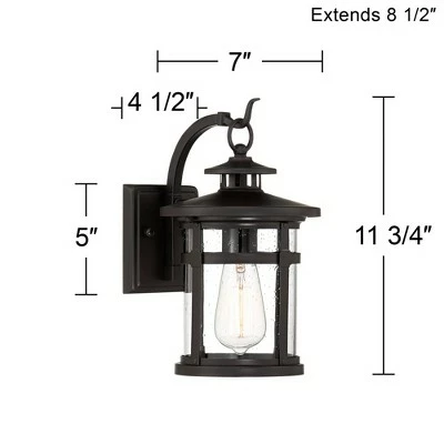This outdoor wall mount light is a modern take on traditional lantern-style fixtures. The clear seedy glass creates a charming rain-flecked look, and the black finish adds a classic touch. Not only will this light brighten up your porch or entryway, it will add a stylish industrial decorative accent to your home.
