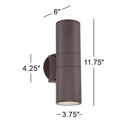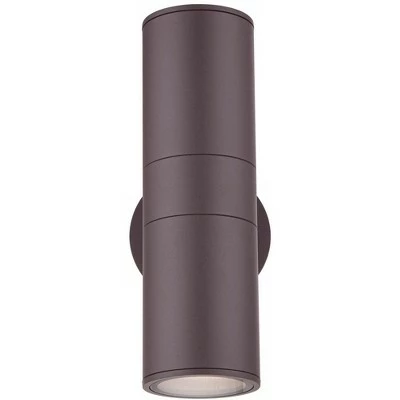Add this sleek contemporary design to your porch, patio, or outside wall. This outdoor wall light comes in a cylinder aluminum body in a brown finish for a classic handsome look. The dual up-and-down lighting design sends beautiful illumination up from the top and out from the bottom of the fixture.