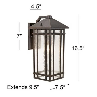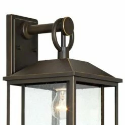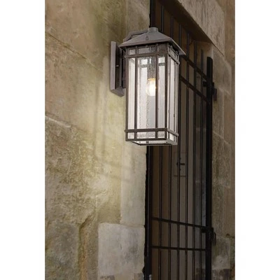 Add Americana styling from the Kathy Ireland Home J du J Sierra Craftsman Collection to your home. This outdoor wall light design was inspired by classic Arts and Crafts looks from the turn of the century. It features a rubbed bronze finish with decorative seedy glass. With its clean lines and striking look, this is perfect for adding curb appeal to your home.