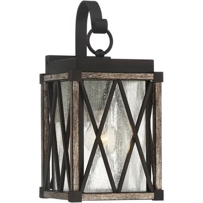 Adorn the outside of any home with this charming rustic wall light design. With clear seedy glass panels and weathered finishes, the design is perfect for farmhouse or cottage-inspired homes. The bronze and wood finishes add the perfect hint of character.