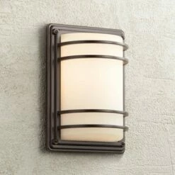 New ๐Ÿ˜‰ John Timberland Modern Outdoor Wall Light Fixture Rubbed Bronze 11″ Opal Glass Sconce for Exterior House Porch Patio Deck ๐Ÿ˜‰