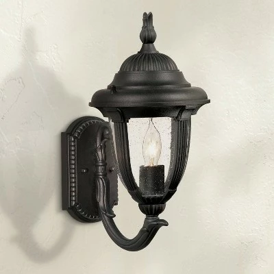 Classic traditional styling for outdoor porch or garage areas. Black finish with seedy glass panels for a distinctive antique look. From John Timberlandยฎ.