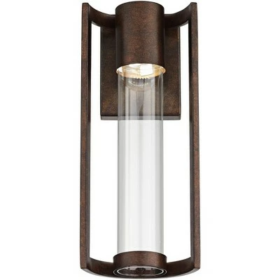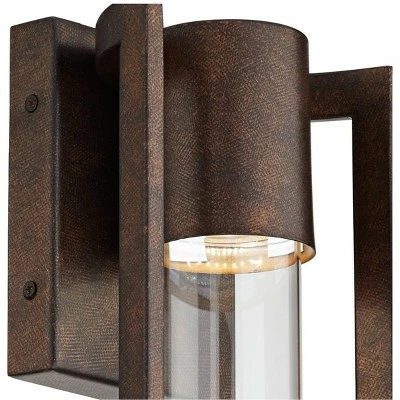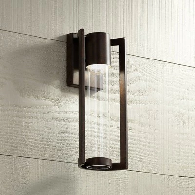 The Maxfield LED outdoor wall light has a striking contemporary look that’s just right for today’s homes. This ADA compliant design comes in a bronze finish and features a clear glass cylinder in the center. Comes equipped with a bright LED light source for energy efficient lighting style.