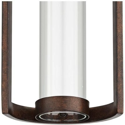 - Bronze finish frame and backplate, clear glass cylinder.