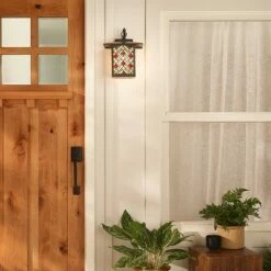 Cheap 👏 11.75" Stained Glass 1-Light Geometric Bronze Outdoor Lantern Wall Sconce – River of Goods 👏
