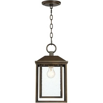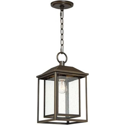 Promo 👏 Franklin Iron Works Mission Outdoor Ceiling Light Hanging Bronze 16 3/4″ Textured Glass Lantern for Exterior House Porch Patio 🎁