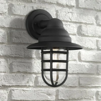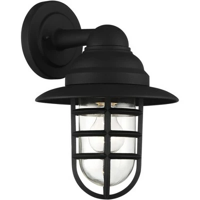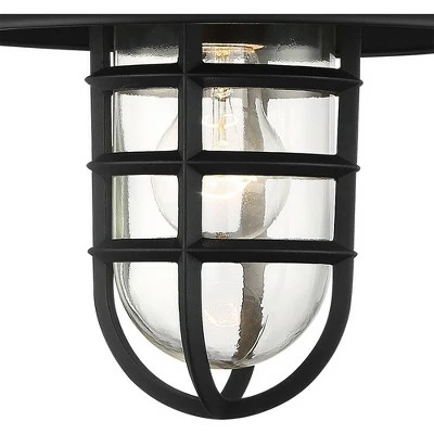 Promo 🤩 John Timberland Industrial Farmhouse Outdoor Barn Light Fixture Black 13″ Hood Cage Clear Glass Exterior House Porch Patio Home ⭐