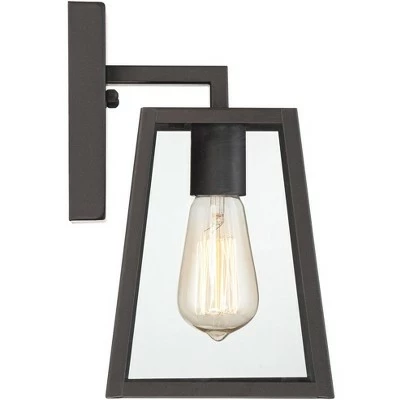 Brighten up your home’s exterior with this handsome outdoor wall light from the Arrington collection by John Timberland. This updated industrial design comes in a tapering black frame with a sleek, straight-lined look. Clear glass panels offer a full view of the beautiful vintage Edison style bulb that is included with purchase. Wet location outdoor rated. Vertical installation and wall mount only.