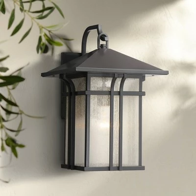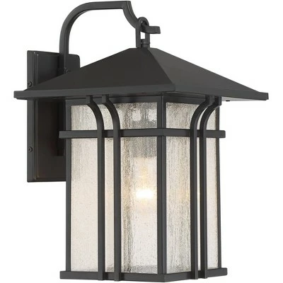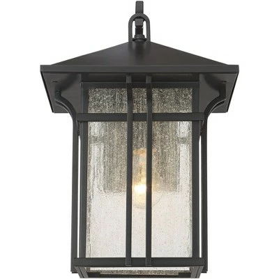 Update your home with this handsome outdoor wall light from the Syon collection by John Timberland. Inspired by Mission Craftsman styles, it comes in a rectangular lantern-like frame painted in a deep bronze finish. Seedy glass panels give the impression of a rain-washed day. Perfect for patio spaces and front door areas.