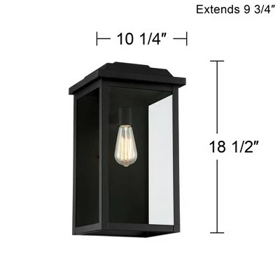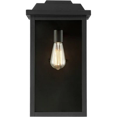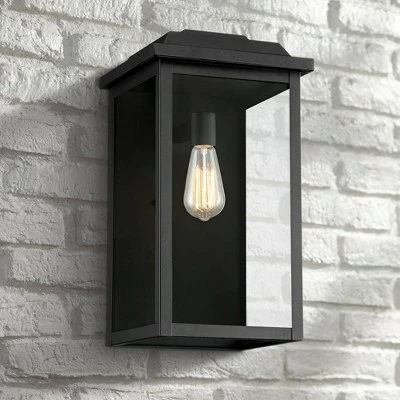 Update your home with this transitional outdoor wall light from the Eastcrest collection by John Timberland. Featuring clean, straight lines and an unassuming rectangular silhouette, it fits into any style or setting. The frame is constructed from steel and painted over in a textured black finish, with clear glass panels supporting throughout. Perfect for a porch, patio, or garage.